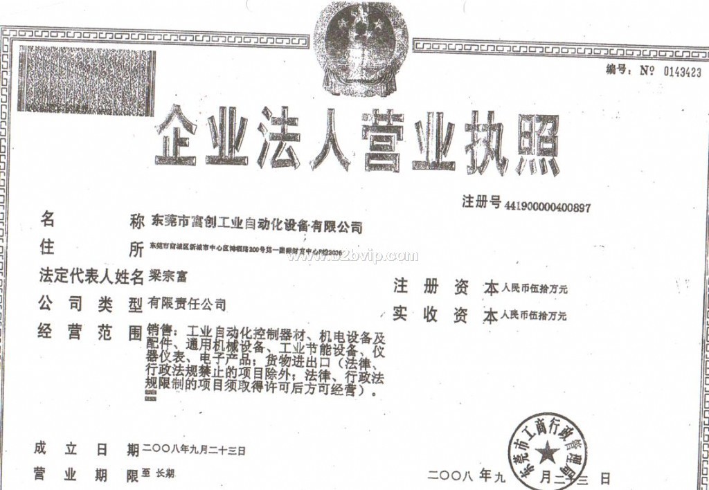 东莞市富创工业自动化设备有限公司营业执照